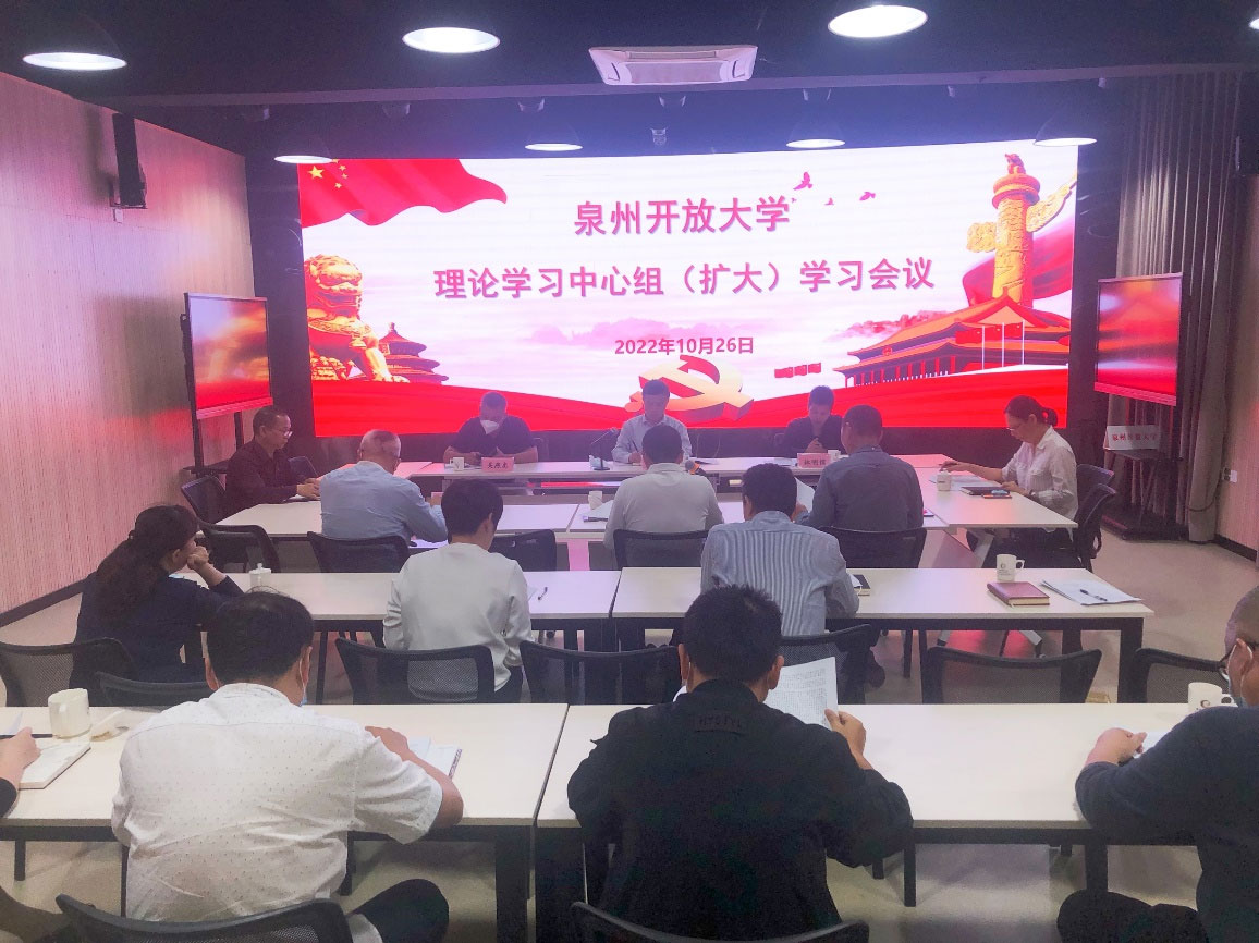 10月26日,泉州开放大学召开党总支理论学习中心组(扩大)学习会议,专题传达学习党的二十大精神。泉州开放大学书记、校长陈向荣主持会议,理论学习中心组成员、处室负责人参加会议。会议邀请了市委教育工委理论学习中心组巡听旁听组二级调研员毛伟雄等一行到会指导。