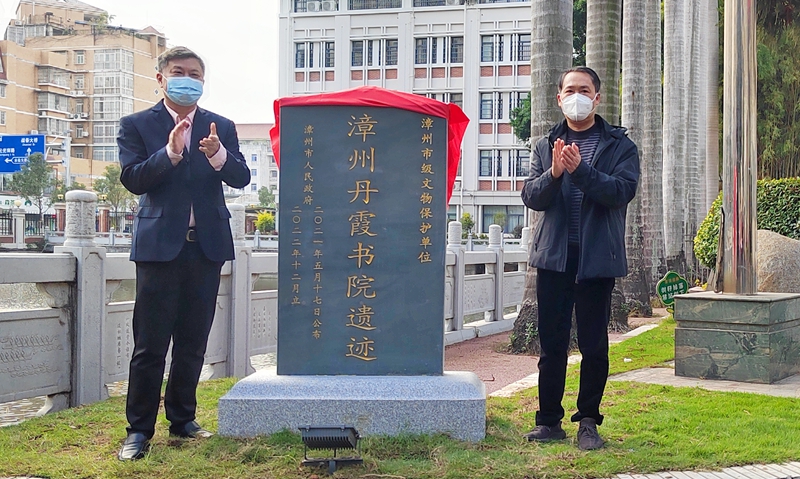 简奕耕与李然共同为“漳州丹霞书院遗迹”保护碑揭牌。