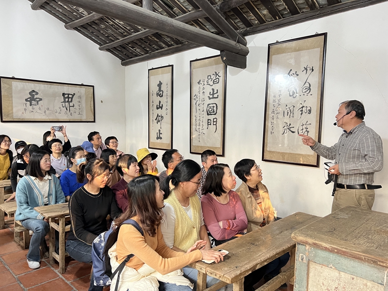 移步坂仔镇的林语堂故居,文学馆馆长林秋辉对大师生平饶有风趣的精彩解说,不时引来阵阵掌声笑声。林语堂先生以“两脚踏东西文化,一心评宇宙文章”为襟怀,用文学形式架起了跨越大洋的桥梁和交流互鉴的纽带。通过参观和听讲,大家进一步增强了作为教育工作者的责任感,纷纷表示,要立足本职岗位,主动传播中华优秀传统文化,汲取本土文化精髓,展现本土文化自信的责任感和使命感。