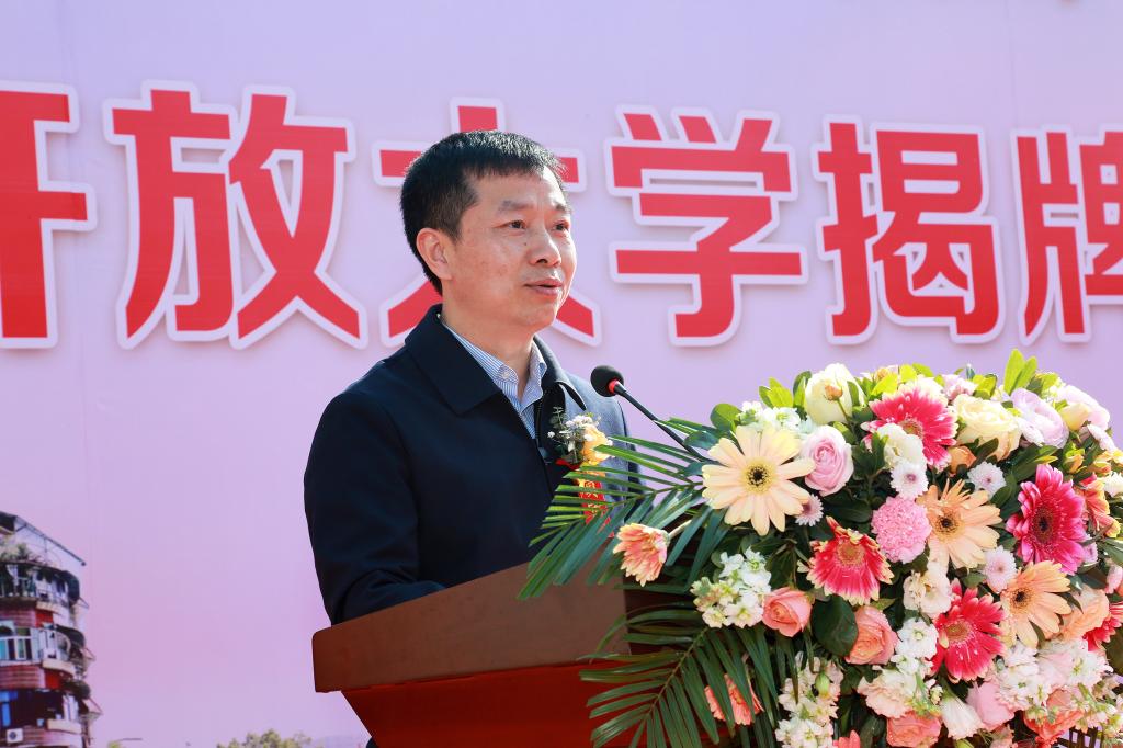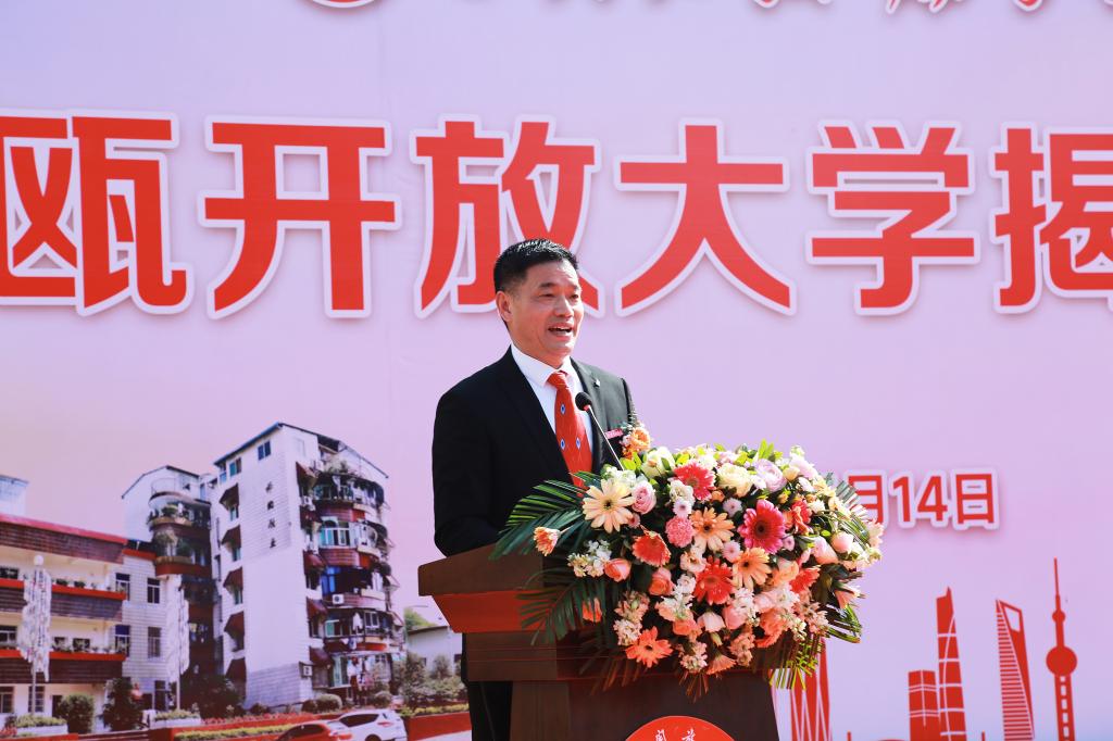 在全国上下学习贯彻2023年两会精神和全省深入实施“深学争优、敢为争先、实干争效”行动之际,3月14日上午,建瓯开放大学揭牌仪式在校园内举行。福建开放大学党委委员、副校长吴建铭,南平开放大学校长林忠炎,建瓯市人民政府市长吴伟,建瓯市委常委、宣传部部长叶华,建瓯市人大常委会副主任陈秀机,建瓯市人民政府副市长张年雄,建瓯市政协副主席雷佩兰,福建开放大学学生工作处、保卫处副处长黄生春,各兄弟县(市、区)开放大学负责人及市教育局领导班子成员等出席仪式,揭牌仪式由建瓯市教育局局长何华生主持。