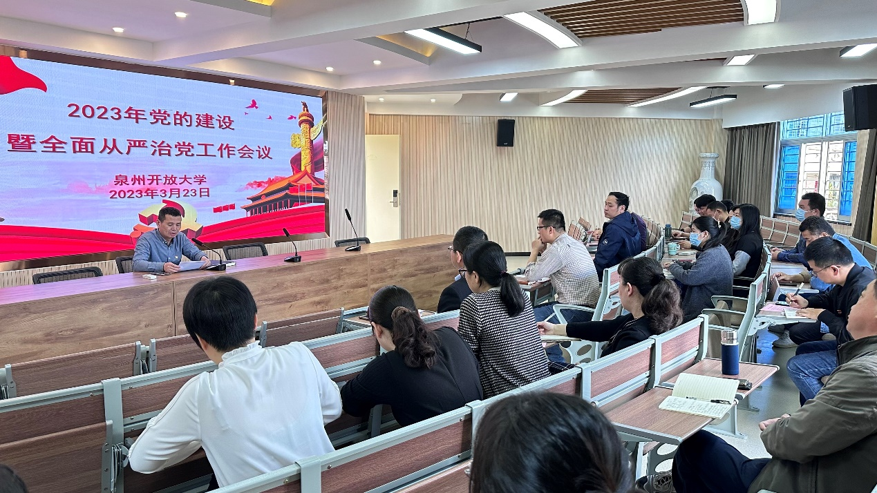 为深入学习贯彻党的二十大精神以及习近平总书记关于党的建设和全面从严治党的重要论述,贯彻落实中央和省、市纪委全会会议精神,安排部署学校2023年党的建设和全面从严治党工作,3月23日上午,泉州开放大学召开2023年度党的建设暨全面从严治党工作会议。全体党员及中层以上干部参加,会议由副校长林春成主持。