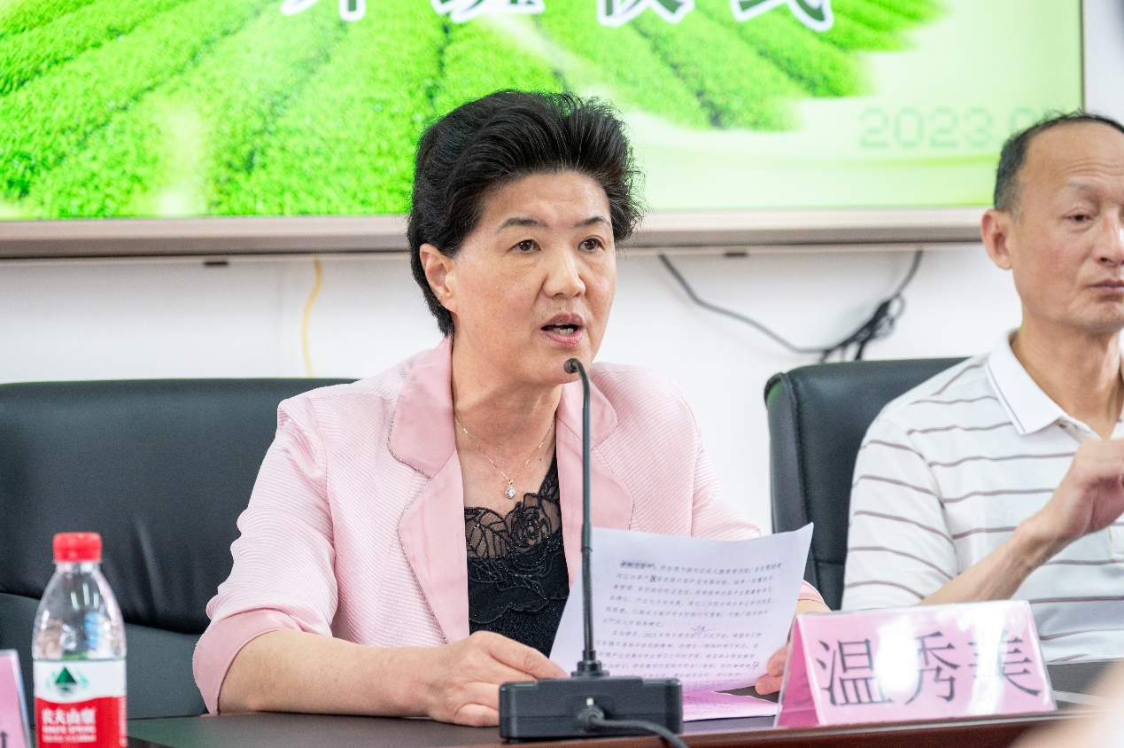 南平市乡村人才振兴促进会常务副会长温秀美祝贺南平开放大学茶叶专班(二期)成功开班。她表示,希望学员努力克服工学矛盾,珍惜来之不易的学习机会,静心总结、充电提能,更好地服务和推动闽北“三茶”产业融合发展。