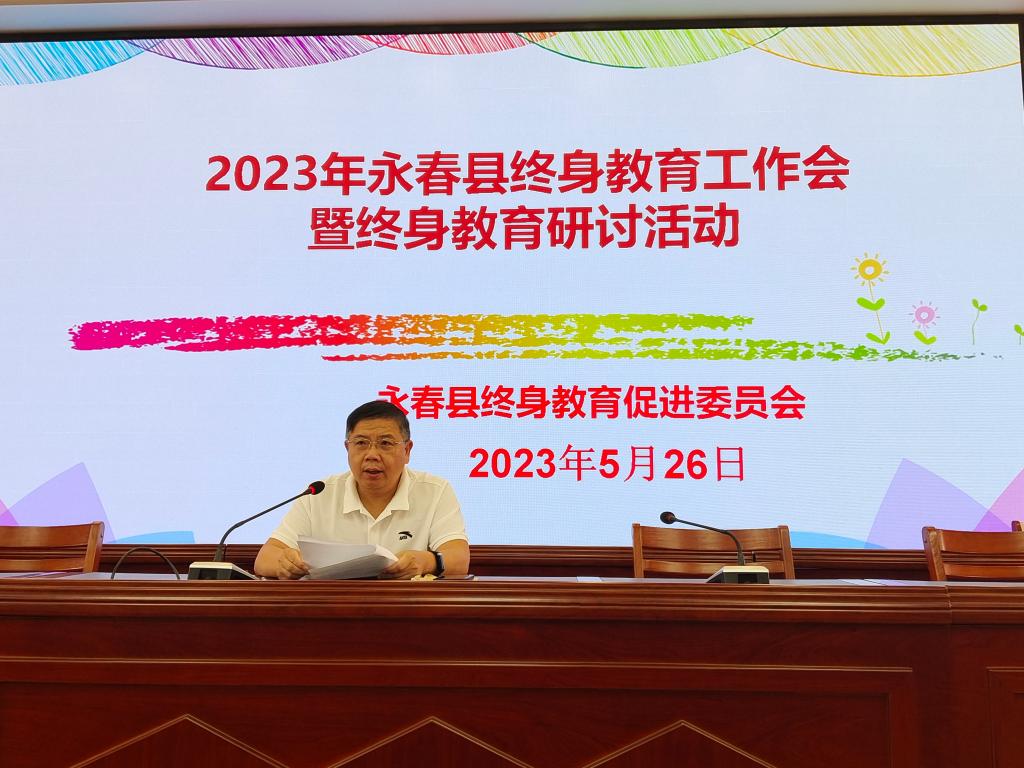 余文湖、颜清地、吴成林、颜幼妹等四位同志分别作《注重社区教育 厚植爱国情怀》《数学教学为全民终身学习提速》《从数学的视角看农村终身教育》《浅谈语文教学在终身教育中的作用》终身教育工作专题研讨发言。永春县教育局基础教育股(成教)负责人黄万选对四位同志精彩的终身教育专题研讨发言给予充分肯定,并就如何做好该县2023年终身教育工作进行详细的部署。