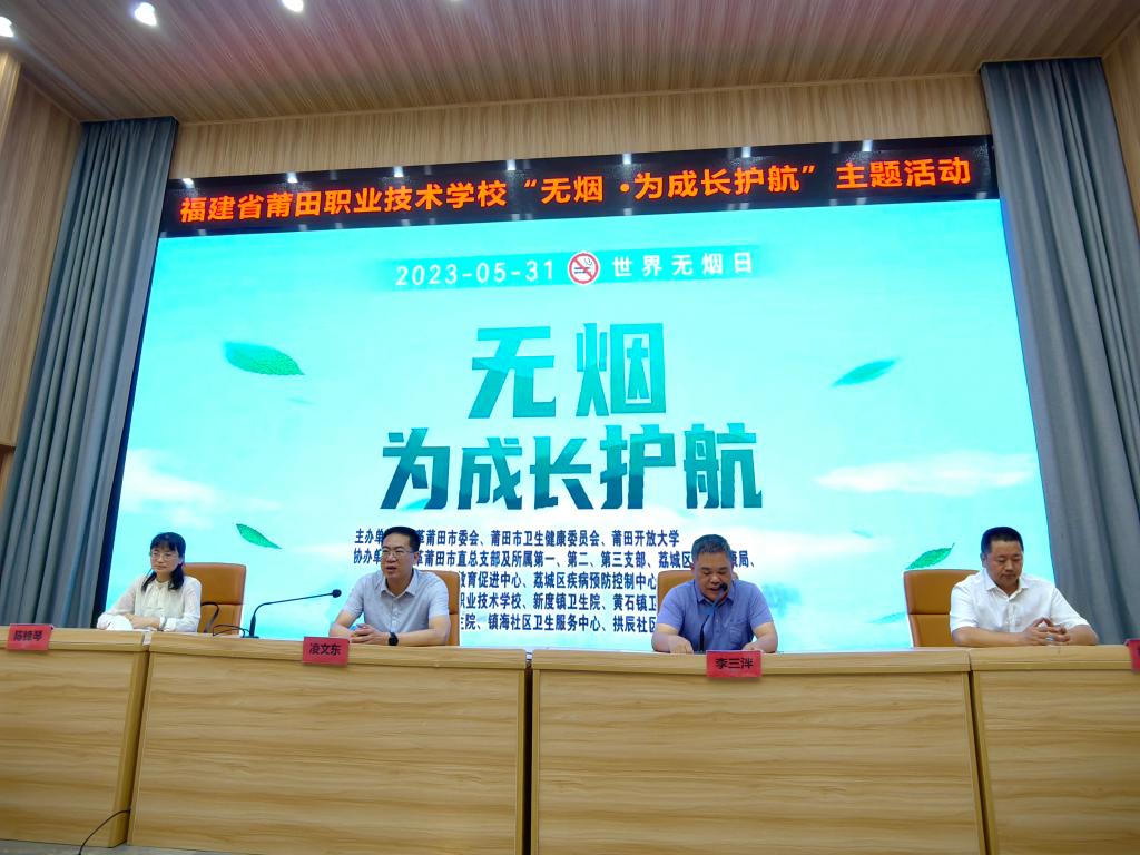 此次活动由莆田开放大学、民革莆田市委会、市卫生健康委员会共同主办,旨在进一步加深青少年对烟草危害的认识,引导他们养成良好的生活习惯,大力营造绿色无烟校园环境。