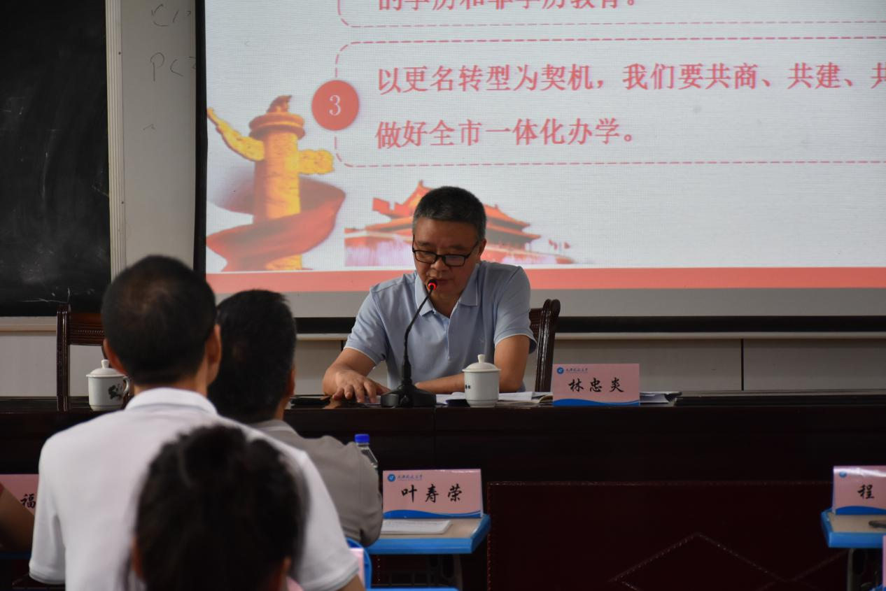 6月16日上午,南平地区办学体系转型升级建设推进暨2023年秋季招生办学工作会议在光泽举办。南平开放大学党总支书记、校长林忠炎出席会议,会议由副校长余运福主持。