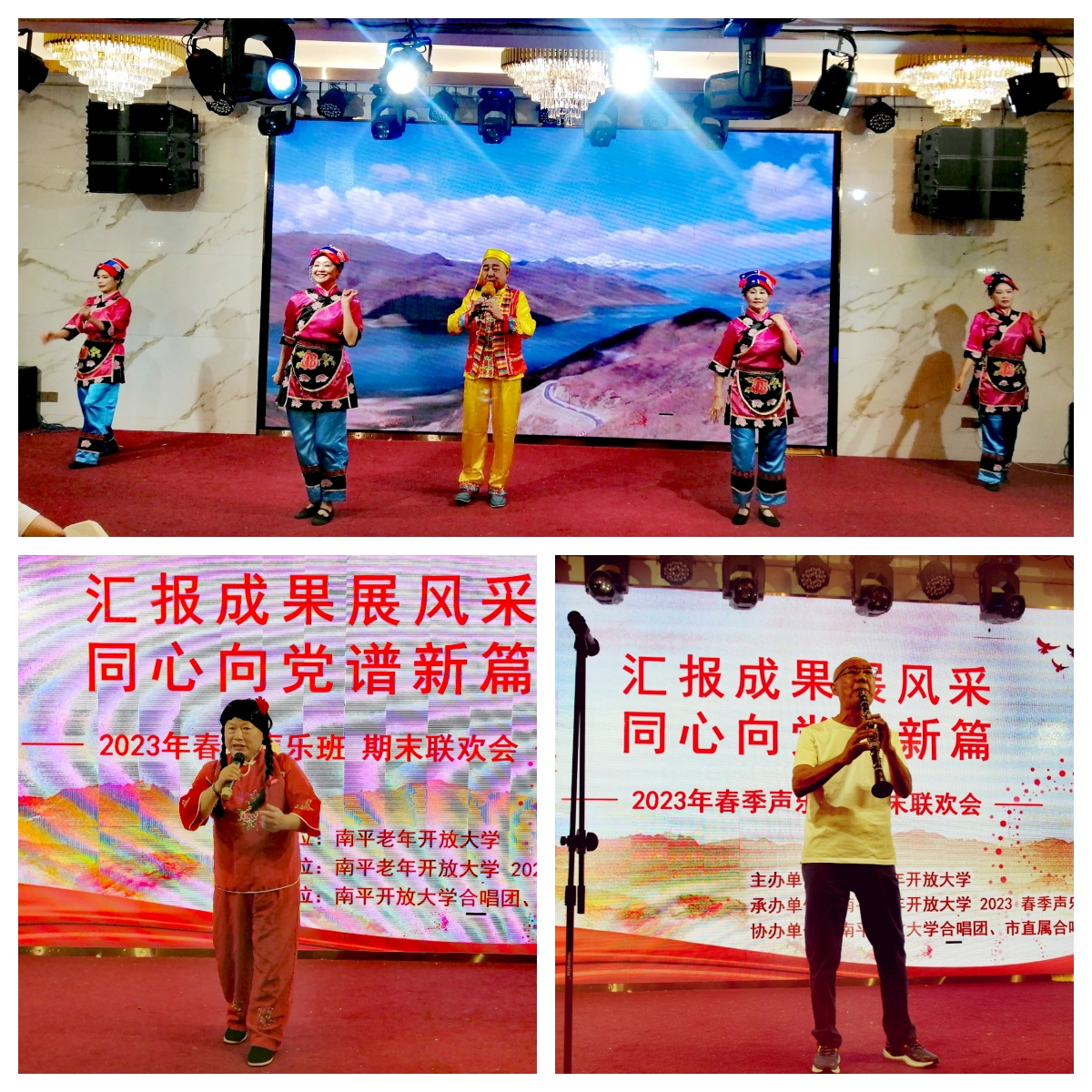 6月25日晚, 南平老年开放(互联网)大学2023春季声乐班学员欢聚一堂,举办“汇报成果展风采 同心向党谱新篇”为主题的教学成果汇报演出,南平开放大学校领导、教师、声乐班学员及共建社团干部群众100余人一同参与并观看演出。