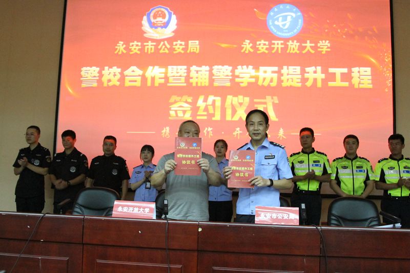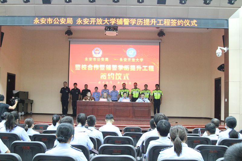 8月9日,永安开放大学和永安市公安局举行合作签约仪式,双方将合作办学、合力开展辅警学历提升工程,以进一步加强辅警人员队伍建设,提升辅警学历水平、业务能力和综合素质。