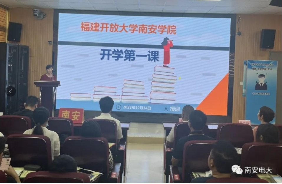 八点三十分,南安学院先组织新生入学教育活动。叶君老师现场介绍了国家开放大学的历史前沿,并讲授了《国家开放大学学习指南》,重点讲述了参与开大学习的方式、方法,勉励新同学学会求知、心怀梦想,砥砺前行,以远大的志向,广阔的胸怀,奋斗的姿态在国家开放大学这所没有围墙的大学勇敢逐梦。