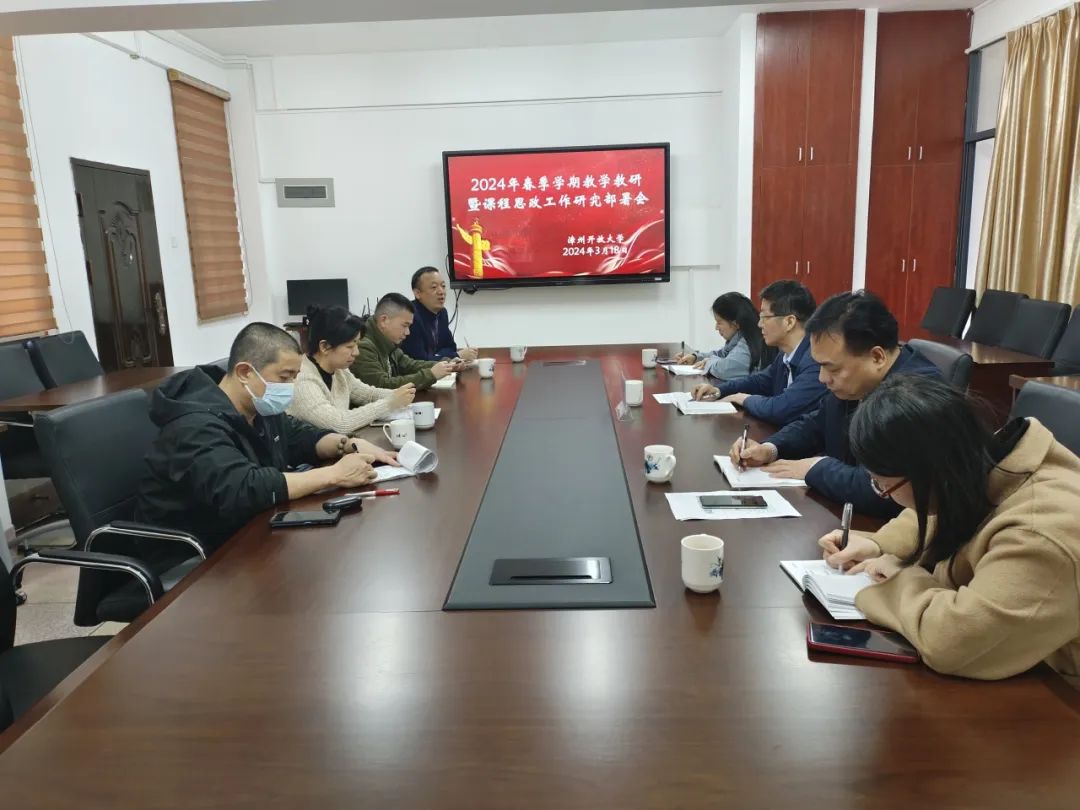 3月18日,漳州开放大学召开2024年春季新学期教学教研暨课程思政工作研究部署会。学校党委委员、副校长吕峰鹏,教务处、社科系、理工系、财经系及思政教研室相关负责人参加会议。