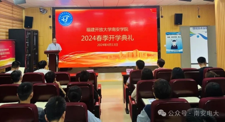 4月13日上午,福建开放大学南安学院在智慧教室举行2024年春季新生开学典礼暨同上“开学第一课”。学院全体老师及2024年春全体新生通过线上线下方式参加活动。活动由专职副书记陈小教主持。