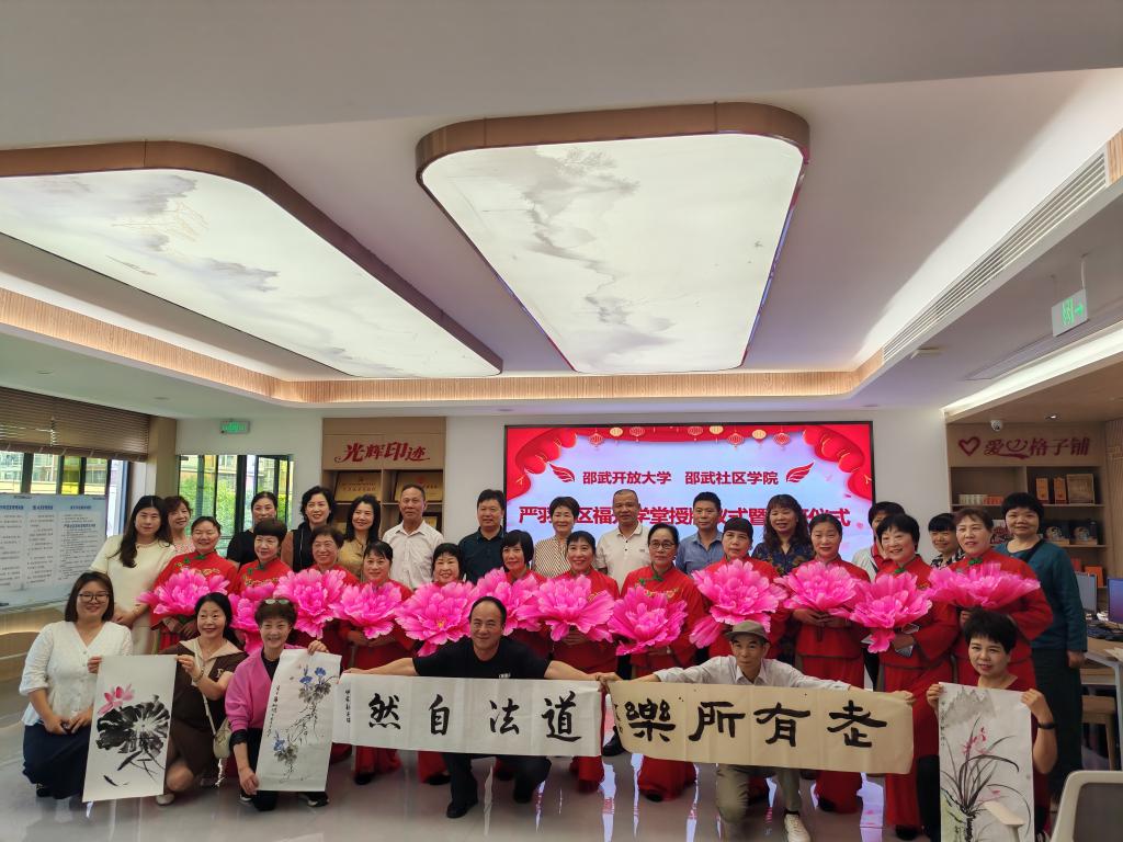 5月15日,邵武开放大学、邵武社区学院严羽社区“福开学堂”授牌暨开班仪式在邵武通泰街道严羽社区举行。邵武通泰街道党工委书记黄庆平、邵武开放大学校长黄香喜、副校长聂良春,严羽社区“青墨”书画协会、“别样红”歌舞队的代表以及社区全体干部40余人参加了授牌仪式。