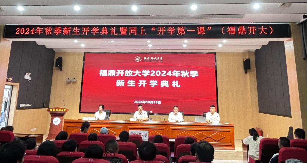 金秋时节,丹桂飘香。10月13日上午,福鼎开放大学举行2024年秋季新生开学典礼暨同上“开学第一课”。福鼎开放大学班子成员、新生班主任及2024秋季全体新生出席开学典礼,共同见证这一重要时刻。开学典礼由副校长唐文奕主持。