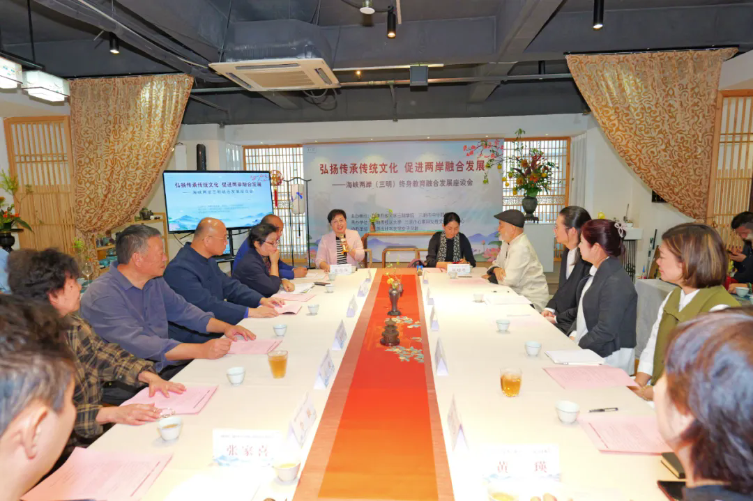 福建开放大学三明学院副院长张莲珠、三明市中华职教社主任及市贸促会会长郑晓英、三元区关心下一代工作委员会主任包国庆等出席座谈会,座谈会还邀请了台湾客座教授、中华职教社代表、三明农校与三明学院的专家学者等共计40余位教育界工作者齐聚一堂。他们围绕传统文化、终身教育及两岸融合发展的前沿议题,展开了深入而富有成效的交流与探讨。