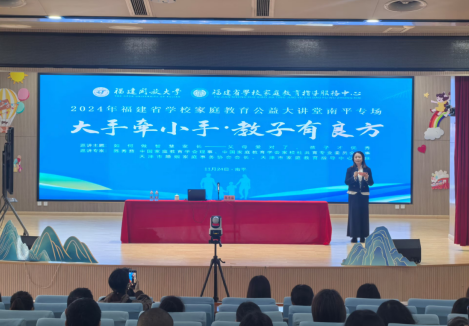 11月24日上午,由南平市教育局指导,福建开放大学、福建省学校家庭教育指导服务中心主办,南平开放大学、南平市学校家庭教育指导服务中心承办,南平实验小学协办的2024年福建省学校家庭教育公益大讲堂(南平专场)活动在南平举行。此次活动采用“线上+线下”的同步分享模式,来自南平实验小学(武夷校区)的200多名教师、家长参加现场活动,南平市9万多人观看了线上直播,此次活动旨在提升家长的教育能力、促进家校共育合作,为广大家长提供科学的家庭教育理念和方法,共同促进孩子的全面发展,推动形成全社会重视家庭教育的良好风尚。