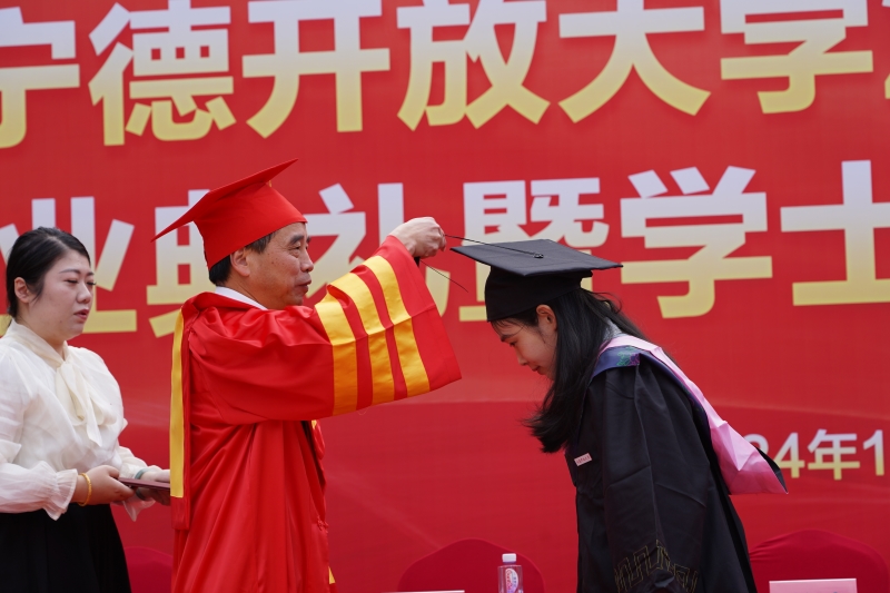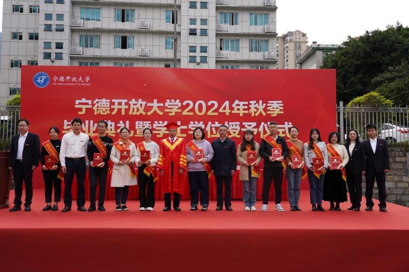 11月30日下午,宁德开放大学举行2024年秋季开放教育学生毕业典礼暨学士学位授予仪式。宁德开放大学党委书记、校长叶祖庚,党委委员、副校长王晓飚出席,典礼由党委副书记余水淮主持。本期毕业生共711名,27人在2024年春季学期获得学士学位证书,学士学位获取人数位居全省开放大学前列。