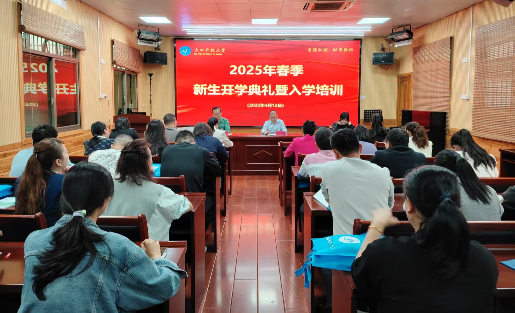 春华种玉,书田耘梦。4月12日上午,福建开放大学2025年春季新生开学典礼暨同上“开学第一课”在福州主会场举行。大田开放大学通过设立分会场,线上线下同步举行,全体教师及新生共80多人现场参加。