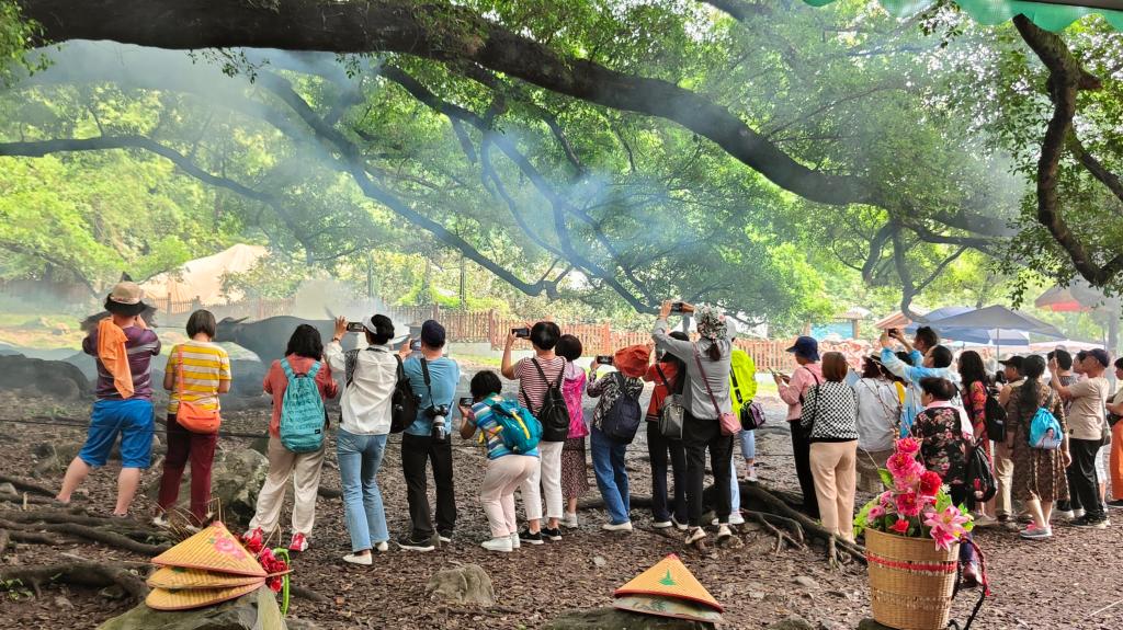 活动末站来到牙城榕枫林公园,老师讲解“茶榕共生”的生态知识,学员还偶遇牵牛农叟与挑担农妇的田园画面,感受自然与人文交融之美。