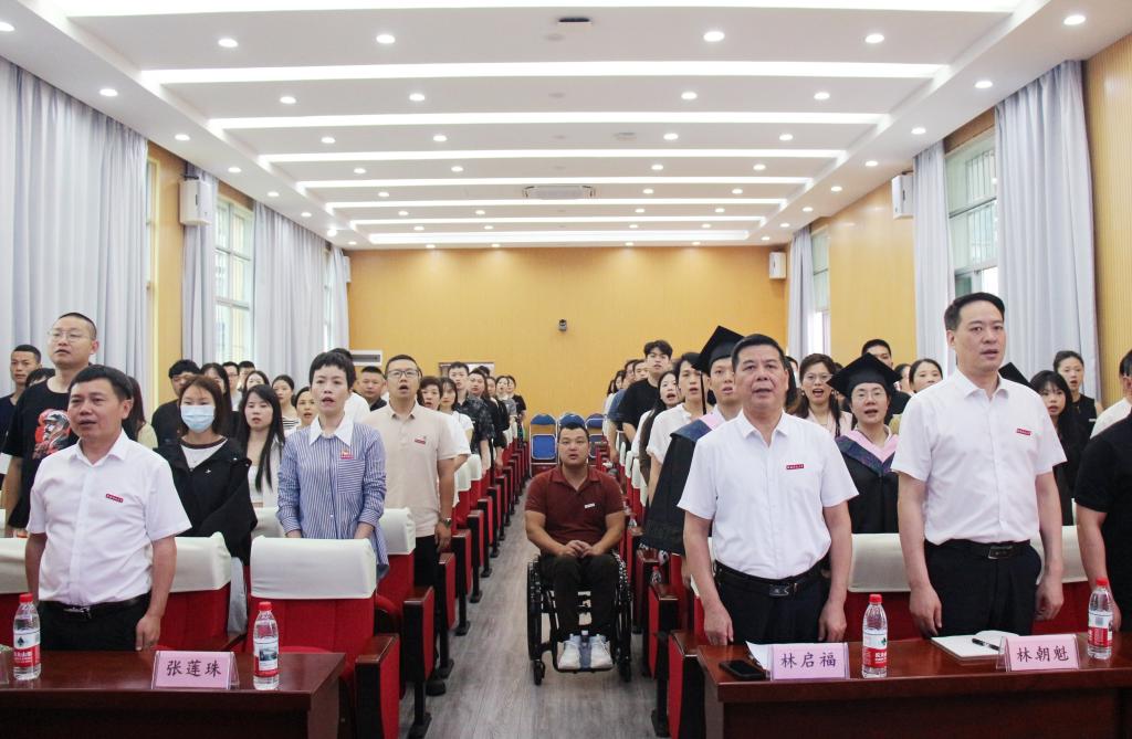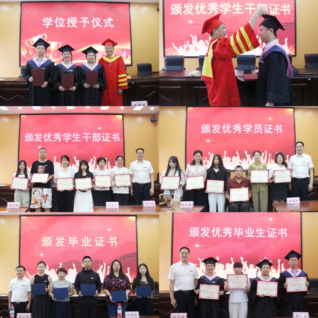 典礼上,招生与学生处魏初琪主任为毕业生代表颁发毕业证书,副院长林朝魁为优秀毕业生、优秀学员、优秀学生干部颁奖。林启福为学士学位获得者“拨穗”正冠,颁发学位证书并合影留念。