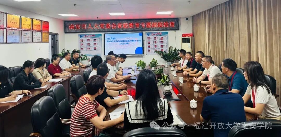 检查组一行实地察看了南安市家庭教育指导服务中心办公场所、活动场地及展板,听取了中心办公室主任、南安开放大学校长苏文德的工作汇报。苏文德就中心成立以来的工作举措、工作成效、存在问题及2026年工作思路向检查组作了详细汇报,检查组对南安市学校家庭教育指导服务中心工作提出了宝贵的意见和建议。