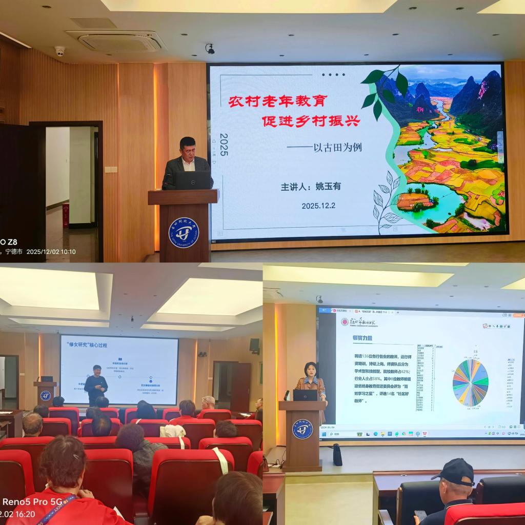 为加强老年教育师资队伍建设,提升老年教育服务能力,古田开放大学于12月2日至4日举办“携手银龄,共筑教育梦想”老年教育师资培训研修班。培训由古田开放大学社区教育指导中心主任丁炽负责组织,古田县教育局党组成员姚玉有莅临指导并作发言,福建技术师范学院教授蔡正华、福州职业技术学院副研究员陈晓凤分别为培训班作《乡村老年教育的理论及实践》与《从“榕城实践”到“立法样本”:老年教育高质量发展的福州路径》专题讲座。