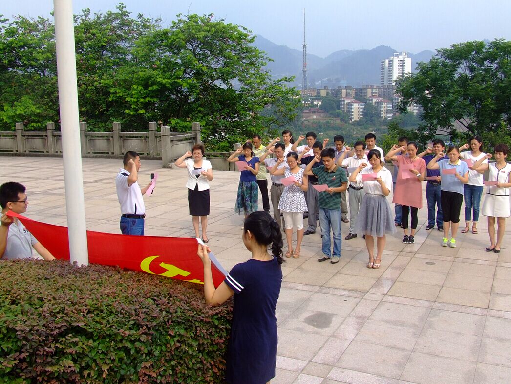 7月1日,正值中国共产党成立94周年,为进一步加强对新党员的共产主义理想信念和党的宗旨教育,三明电大党总支组织新发展的预备党员与全校党员干部在麒麟山革命烈士纪念碑前举行缅怀革命先烈、新党员入党宣誓和老党员重温入党誓词活动。