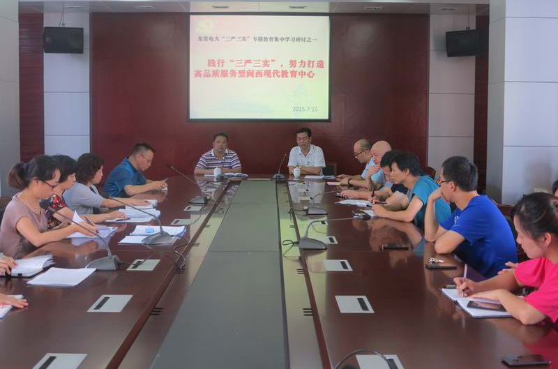 7月15日下午,龙岩电大召开“三严三实”专题教育集中学习研讨会暨2014—2015学年期末工作总结会,全体教职工参加学习研讨。校长邓思平主持会议。