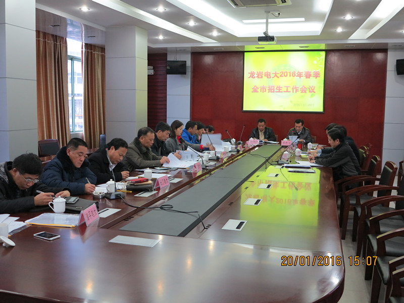 1月20日下午,龙岩电大组织召开了2016年春季全市电大招生工作会议,校长邓思平、校党支部书记林伟能和各县(市)站长、招生负责人及校内各处室负责人参加了会议。邓思平主持会议。