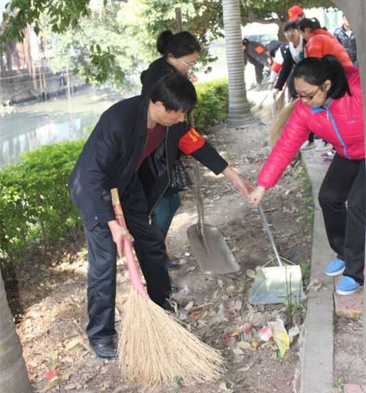 群英社区地处涵江城区中心,店铺林立,车辆川流不息,街面杂物垃圾较多。群英桥下沟渠由于水流不通畅,散发着异味。志愿者们不怕脏,不嫌臭,分组分片,手拿铁铲和扫把,打扫街面,清理树丛中的垃圾和树叶,铲除渠沟淤泥,一丝不苟,不放过一个“死角”。校领导率先带头,徒手搬运路边折断的树干、杂物。“如果不及时清理垃圾,就会滋生蚊虫,周边居民的生活也会受影响。”志愿者高老师一边清扫一边表示,“服务别人也是服务自己,再苦再累也值得。”