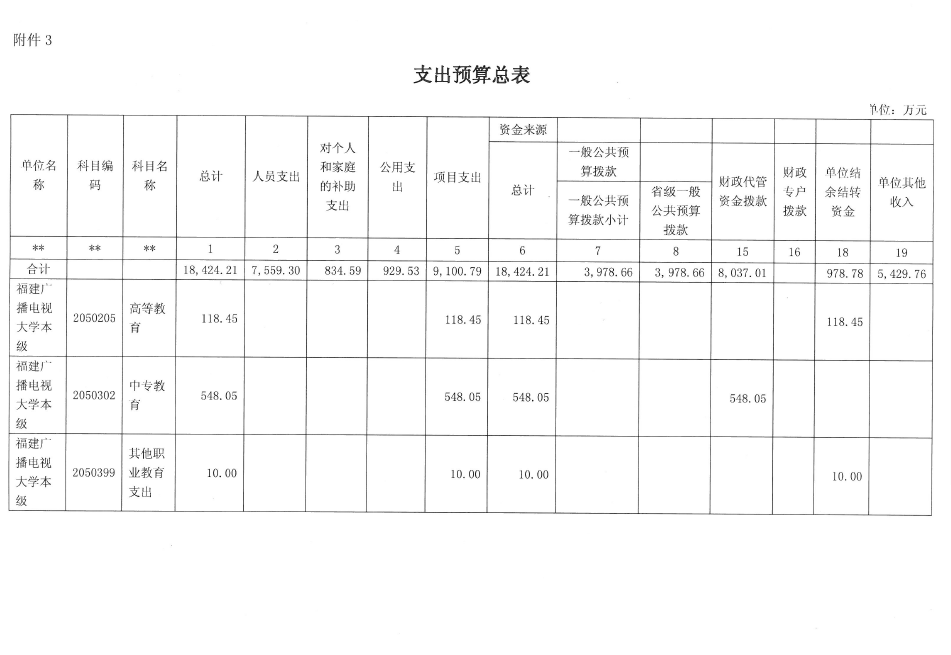 3.支出预算总表