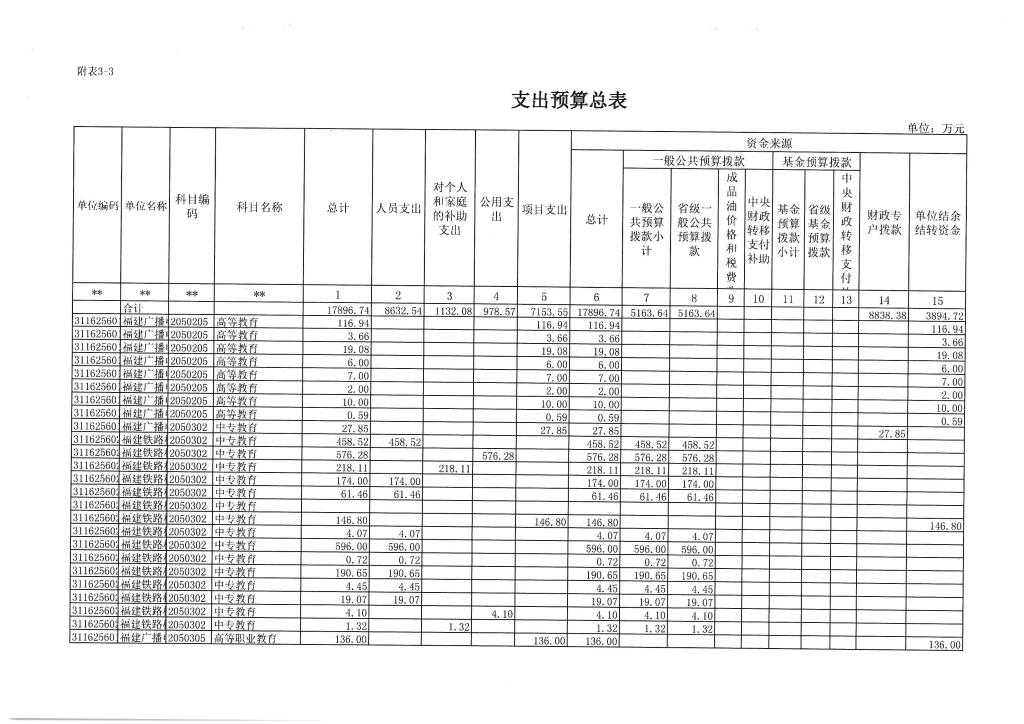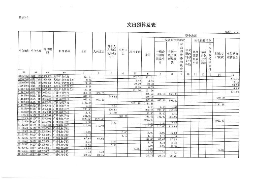 (二)广播电视学校(2050501科目)2214.52万元。主要用于福建电大校本级日常公用、工资福利、对家庭个人补助等支出。