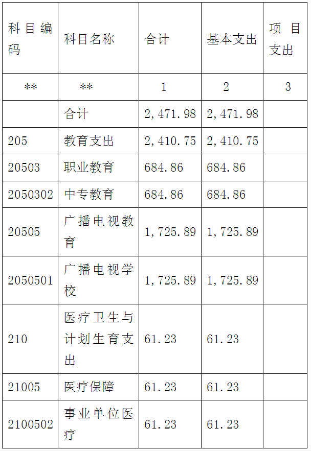 (二)医疗保障支出(21005科目)61.23万元。主要用于校本级职工缴医保支出。