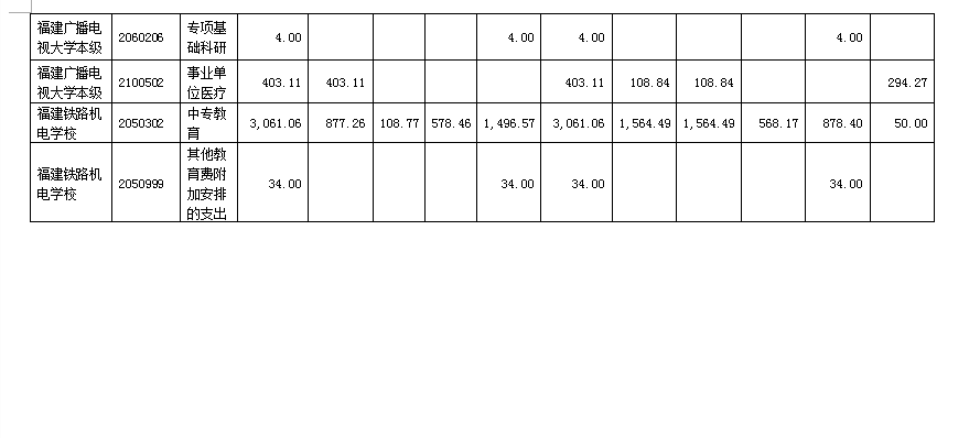 (三)中专教育(2050302科目)1564.49万元。主要用于福建铁路机电学校日常公用、人员经费、对家庭个人补助等支出。