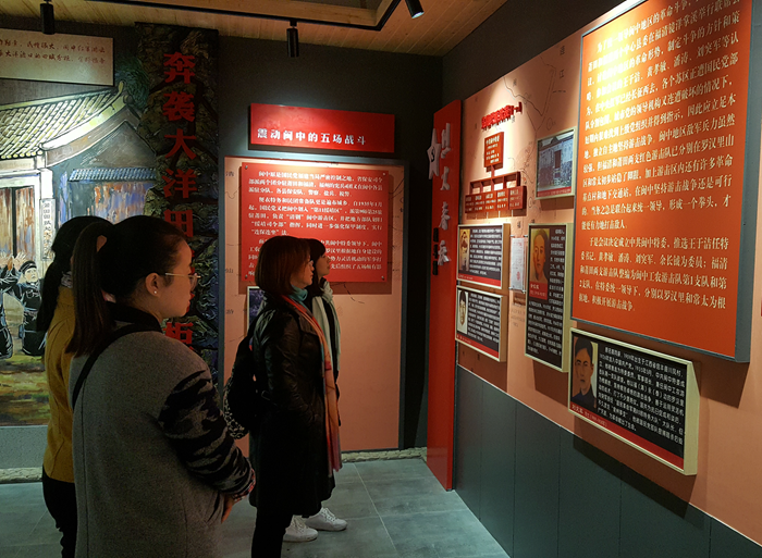 福清市一都镇是革命老区,全镇6个行政村有5个是老区基点村。罗汉里是我国民主革命时期中共福建省闽中特委活动中心之一,也是闽中工农红军游击队第一支队的根据地。在革命根据地,大家沿着当年红军走过的路,重走红军路,追寻先辈足迹,先后参观了罗汉里革命纪念馆、文物馆、红军宿舍、红军学校等,详细了解了闽中游击支队革命先辈光荣的战斗史。