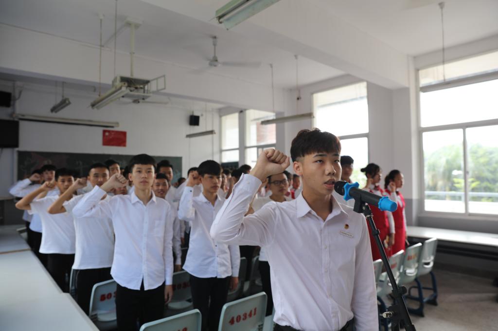 仪式在雄壮的国歌声中拉开帷幕。组织部部长姚锦灿同学郑重宣布新团员名单,56名同学一一站起由团委老师为他们颁发团徽和团章,随后全体新老团员进行庄严宣誓。仪式上,新团员代表郑宇、老团员代表陈瑶分别讲述了自己对共青团的认识和感受,号召全体新团员发扬共青团优良传统,努力学习文化知识,提高个人素质,履行团员责任,发挥团员作用,时刻用团徽来鞭策自己,把个人理想和实现中华民族伟大复兴的中国梦紧密联系在一起,在奋斗中绽放出灿烂的青春光彩。