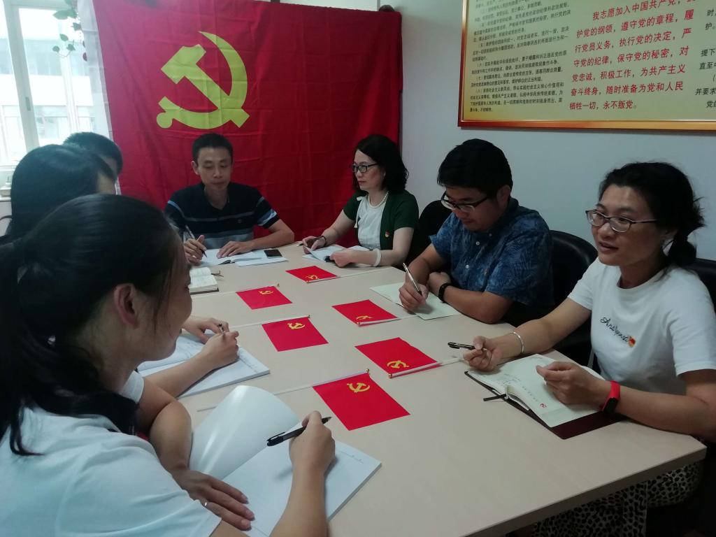在雄壮的国际歌声中,全体党员共同佩戴了党员徽章。杨聪颖和俞建军作主题发言。杨聪颖指出:心中有信仰,脚下有力量,只有心存百姓,牢记宗旨使命,才能在这场新冠疫情大考中突显共产党人“为人民服务”的恒心,也是检验党员干部的试金石。俞建军表示,在这场战疫的人民战争中,我们看到了中国的成绩,更加坚定了道路自信、理论自信、制度自信和文化自信。其它党员还从基层社区工作者工作、自身履行岗位职责和引导身边家人朋友正确战疫等多个角度分享了战疫小故事。最后在支部书记的带领下重温了入党誓词。