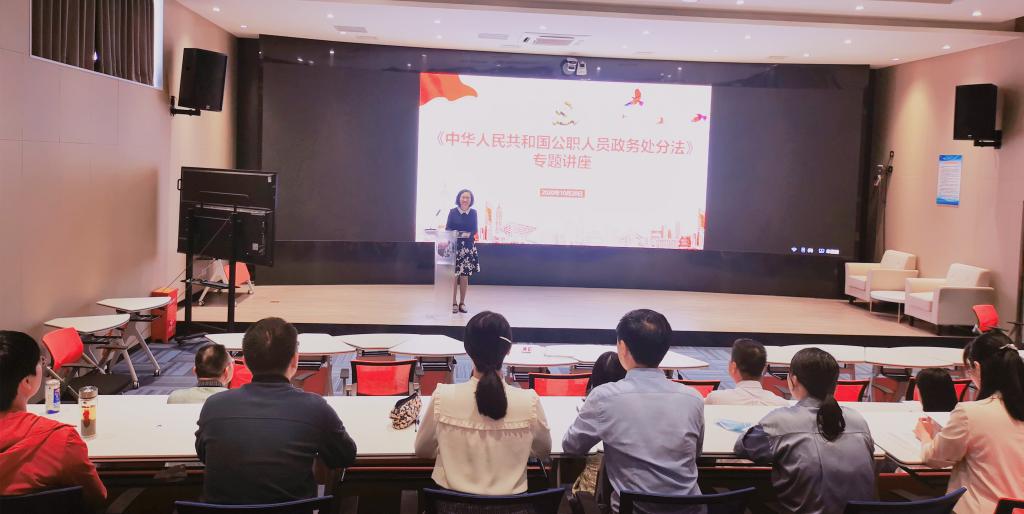 本次活动邀请了人事处处长陈精珠为全体教职工解读了《中华人民共和国公职人员政务处分法》。陈精珠从“制定《政务处分法》的背景和意义”“《政务处分法》的主要内容”“切实抓好《政务处分法》的贯彻执行”三个方面深入浅出地阐述了《政务处分法》的精神,呼吁大家坚决扛起政治责任,增强尊法守法用法意识,发挥法规制度标本兼治作用,筑牢师德之基。
