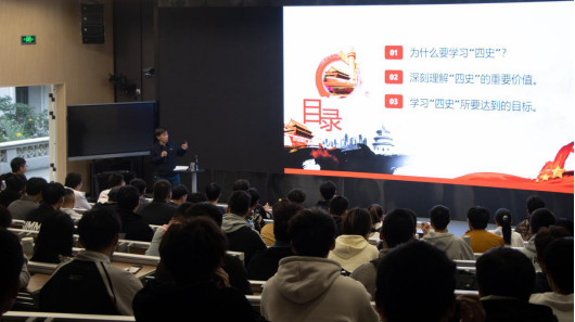 党课通过“为什么要学习‘四史’”“深刻理解‘四史’的重要价值”“学习‘四史’所要达到的目标”三个模块展开。吴宁晖要求青年学生通过学习“四史”,深刻理解中国共产党的领导是贯穿党史、新中国史、改革开放史、社会主义发展史的主导性实践逻辑,要从“四史”中汲取经验智慧,坚定中国特色社会主义“四个自信”,做到学、思、用贯通,知、信、行合一,把小我融入大我,努力奋斗,勇于实践,为实现中华民族伟大复兴的中国梦贡献自己的力量。