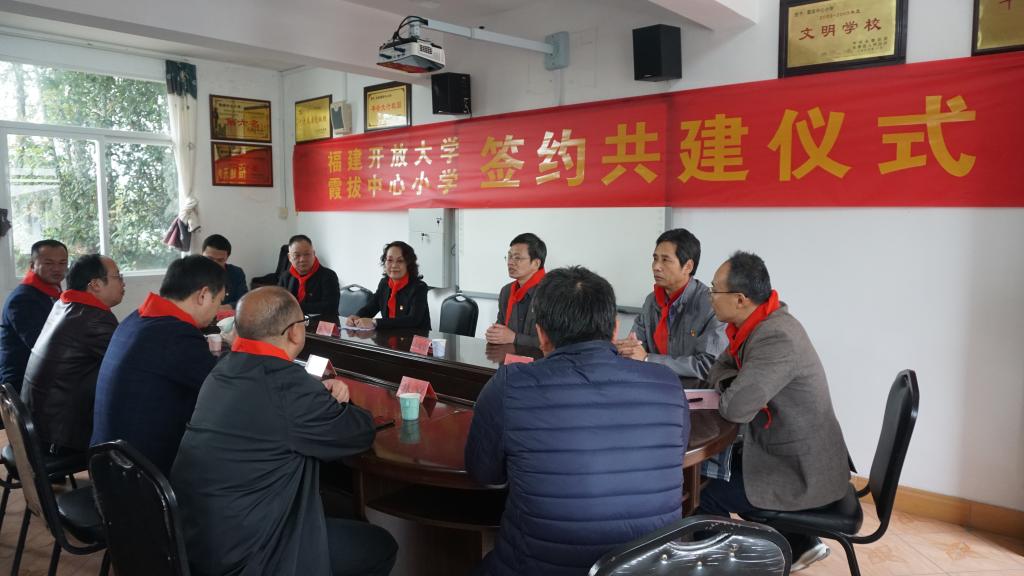 活动第二站,支部与霞拔中心小学党支部举行共建签约仪式,学校党委副书记马成斌、永泰县教育局局长、霞拔乡党委书记出席仪式并致辞,仪式由支部书记施宁娜主持,两个支部共二十余名党员参加。马成斌在致辞中表示,此次共建活动是学习贯彻党的十九届六中全会精神、推动党的理论下基层的重要举措,也是“大手拉小手”促进基层支部建设的具体行动。希望在驻村第一书记的牵线搭桥下,两校通过项目共建、资源共享、活动共联、合作共促等方式丰富共建内涵,共促立德树人根本任务落细落深,推动基层党建与教育质量创新发展,助力乡村振兴。