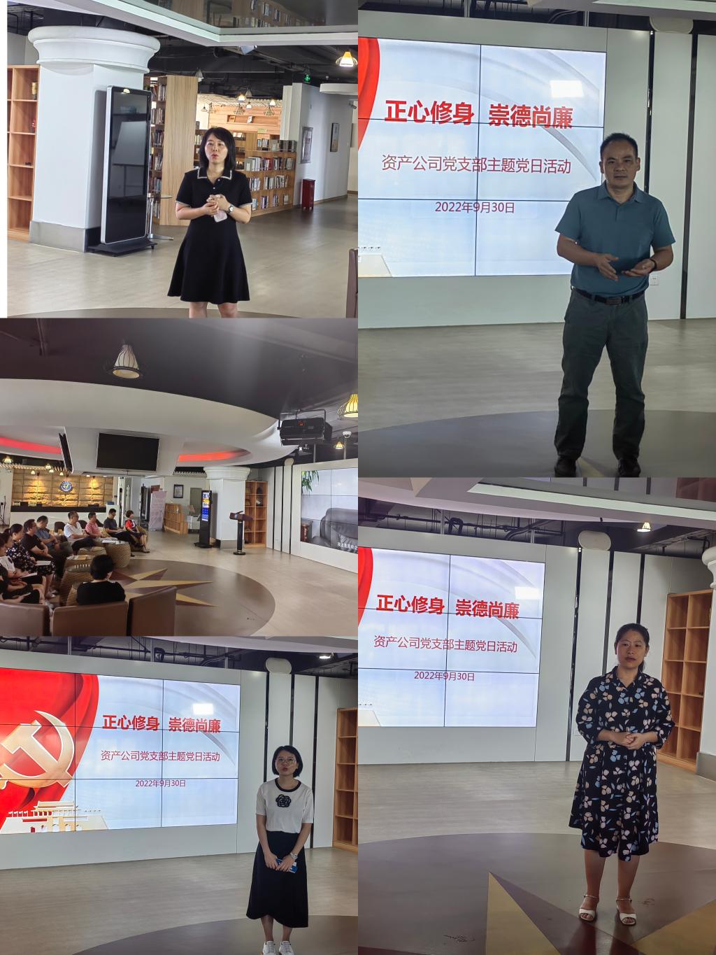 9月30日,资产经营有限公司党支部通过观看廉洁文化教育片、剖析廉政案例、分享廉政心得等形式开展以“正心修身、崇德尚廉”为主题的党日活动。纪检监察室副主任蔡亮光应邀参加,资产经营有限公司全体员工参加活动。活动由支部书记张以华主持。