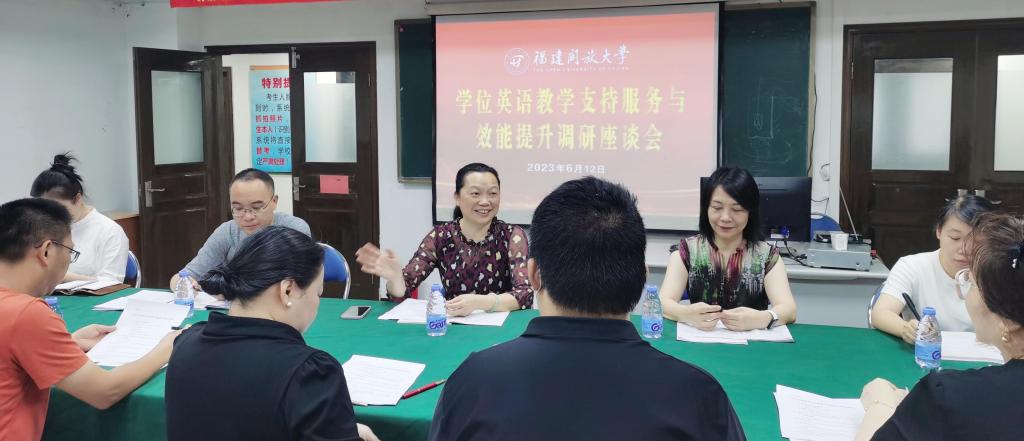 此次座谈会旨在深入开展学习贯彻习近平新时代中国特色社会主义思想主题教育,全面贯彻落实党的二十大精神,落实学校大兴调查研究要求,以学院“我为师生群众办实事”活动以及“深学争优、敢为争先、实干争效”行动项目——“英语智慧教学改革”项目为切入点,提升学位英语教学水平和支持服务能力,深化学院办学内涵建设。