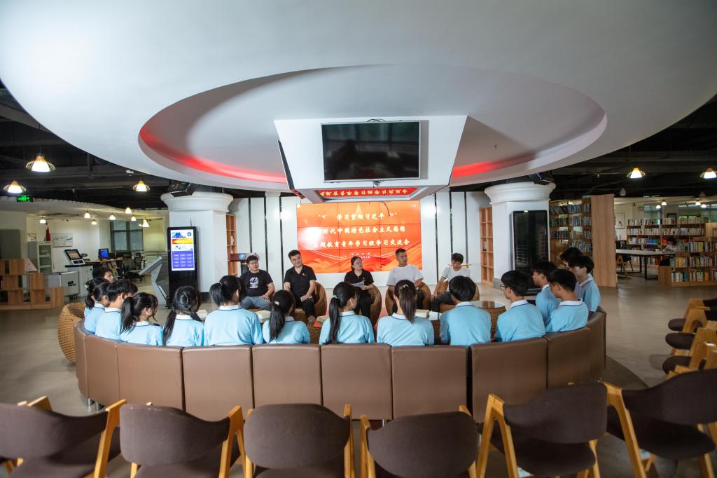 6月21日下午16点30分,职业学院电气工程系党支部在明德楼三楼图书馆开展了“学习贯彻习近平新时代中国特色社会主义思想主题教育青年学习交流会”。电气工程党支部书记程铭瑾、学院团委书记郑大忞、公共管理系组织委员兼纪检委员谢一中、电气工程系团总支书记熊晟罡、电气工程系学生会负责人陈龙参加。