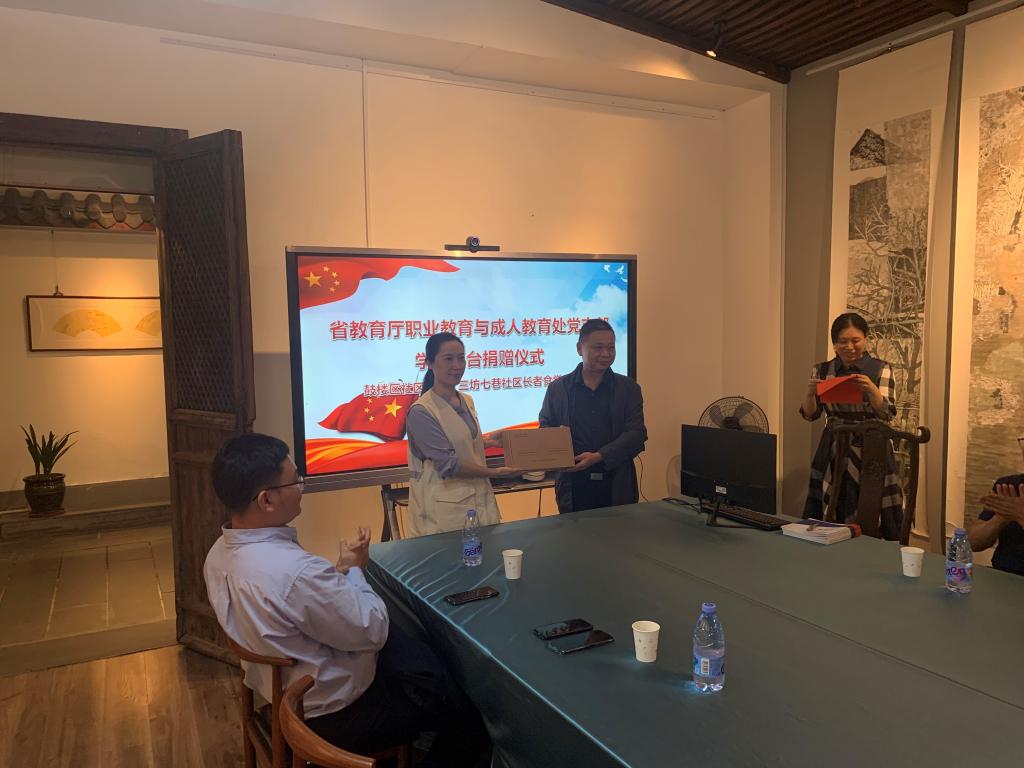 10月11日,为深入学习贯彻党的二十大精神,巩固学习贯彻习近平新时代中国特色社会主义思想主题教育成果,筑牢拒腐防变的思想道德防线,构建风清气正的政治生态和育人环境,终身教育社区教育党支部联合省教育厅职业教育与成人教育党支部、鼓楼区教育局民管办和鼓楼区社区学院20余名党员干部到三坊七巷历史人物勤廉馆开展廉洁教育主题党日活动,并向三坊七巷长者食堂(学堂)捐赠了一台老年智能学习陪伴平台终端设备,助力社区老年教育事业的蓬勃发展。