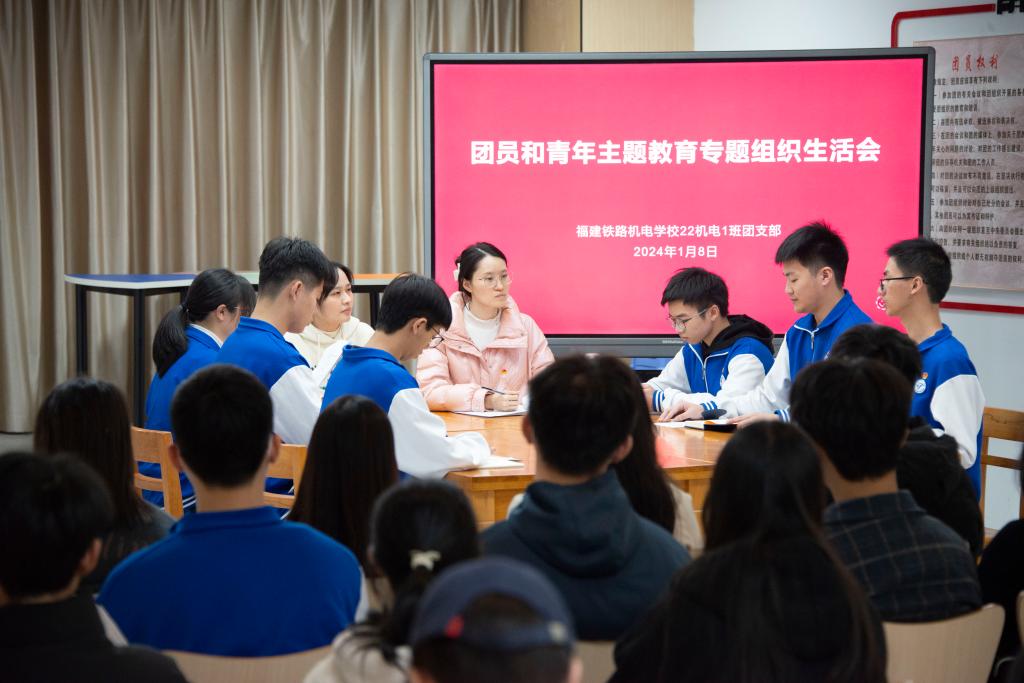 1月8日下午,职业学院团委组织2022级机电1班团支部开展团员和青年主题教育示范性专题组织生活会。团委办公室副主任林舒俐、电气工程系团总支书记熊晟罡、2022级机电1班班主任王真真出席会议,2022级机电1班团支部全体团员参加会议。