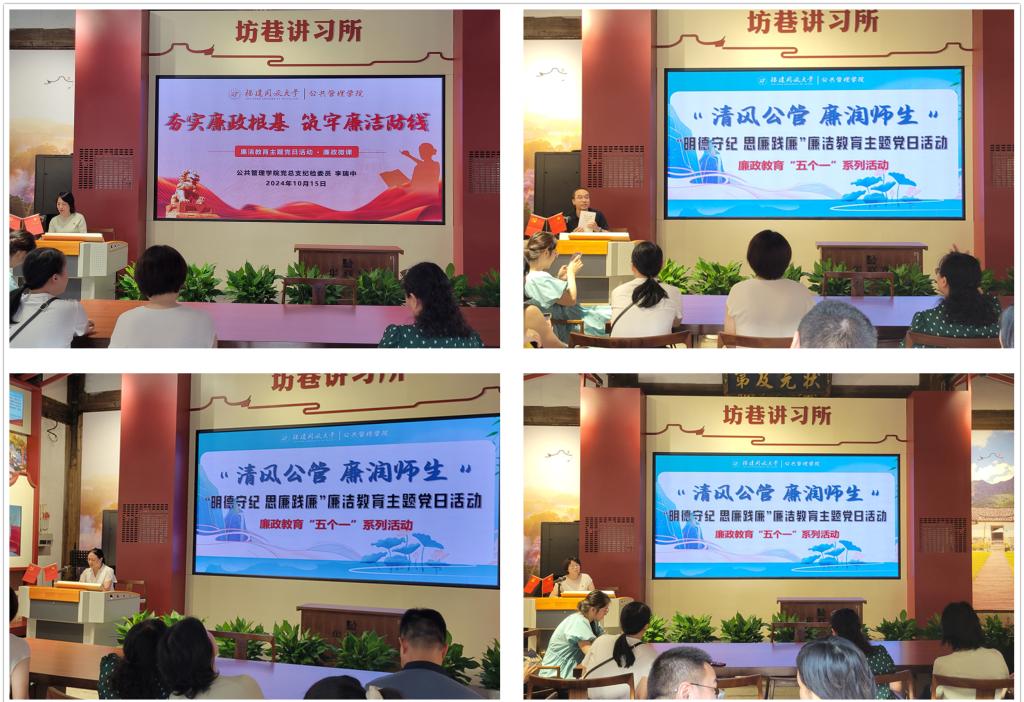 为深化党纪学习教育成果,持续兴廉风、树正气,营造教风清正、学风清新、院风清净的育人环境,公共管理学院党总支以“明德守纪、思廉践廉”廉洁教育主题活动月为抓手,通过以学倡廉、以案警廉、以融润廉、以制促廉等多种举措,持续擦亮“清风公管 廉润师生”廉洁文化品牌。