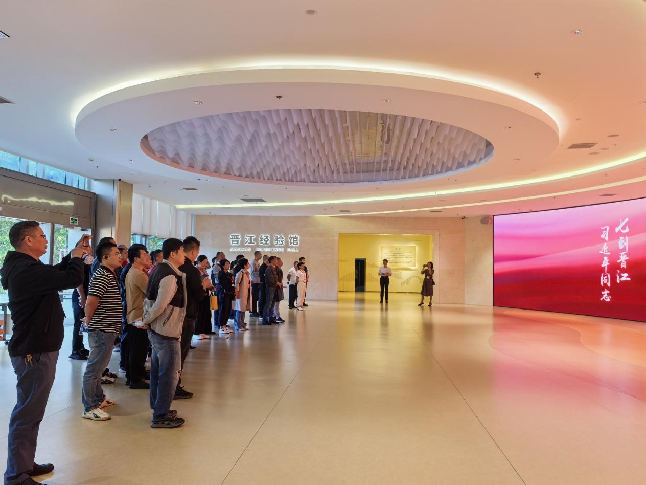 在讲解员的带领下,学员们认真观看图片和影像,感受晋江文化变迁、城市规划、产业布局等情况,以及历年来所取得的经济社会发展成果,全方位了解习近平总书记提出的以“六个始终坚持”和“正确处理好五大关系”为主要内容的创新发展“晋江经验”,以及其中“敢拼、爱拼、善拼”的晋江改革精神。