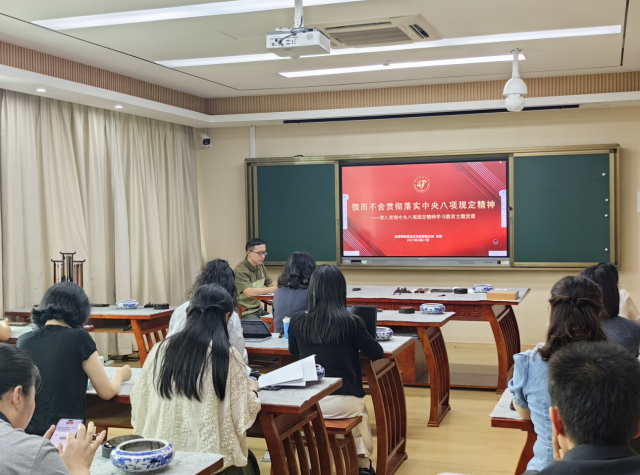 党总支副书记、党政管理支部书记许勇为学院党员教师讲《锲而不舍贯彻落实中央八项规定精神》专题党课。党课阐述了锲而不舍贯彻落实中央八项规定精神的重大意义,指出贯彻落实中央八项规定精神需要把握的三个方面重点问题,并结合学院实际,号召大家将贯彻落实中央八项规定精神与做好本职工作结合起来,真抓实干、勇于担当、积极作为,以优良作风凝聚起推动学院发展的强大合力,推动招生办学高质量发展。