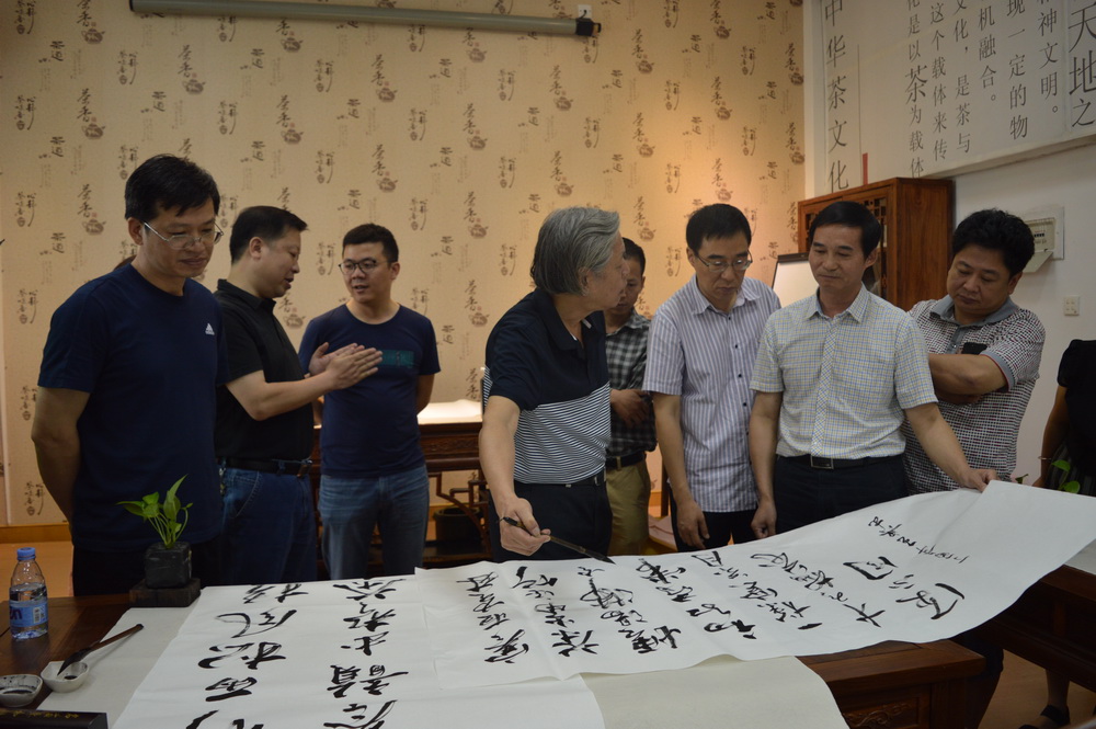 王永钊还现场泼墨示范了四种不同的书法表示形式,有篆体、行书、楷体等,为在场观众献上了一场丰盛的书法艺术盛宴,现场人员也纷纷提笔书写,王永钊对每一份书法作品从书写方式、笔意及整体气势等都一一做了精彩点评。王永钊称赞了大家的学习热情,希望大家勤练书法,传承中国传统文化,感受书法之美,热爱书法,热爱生活。