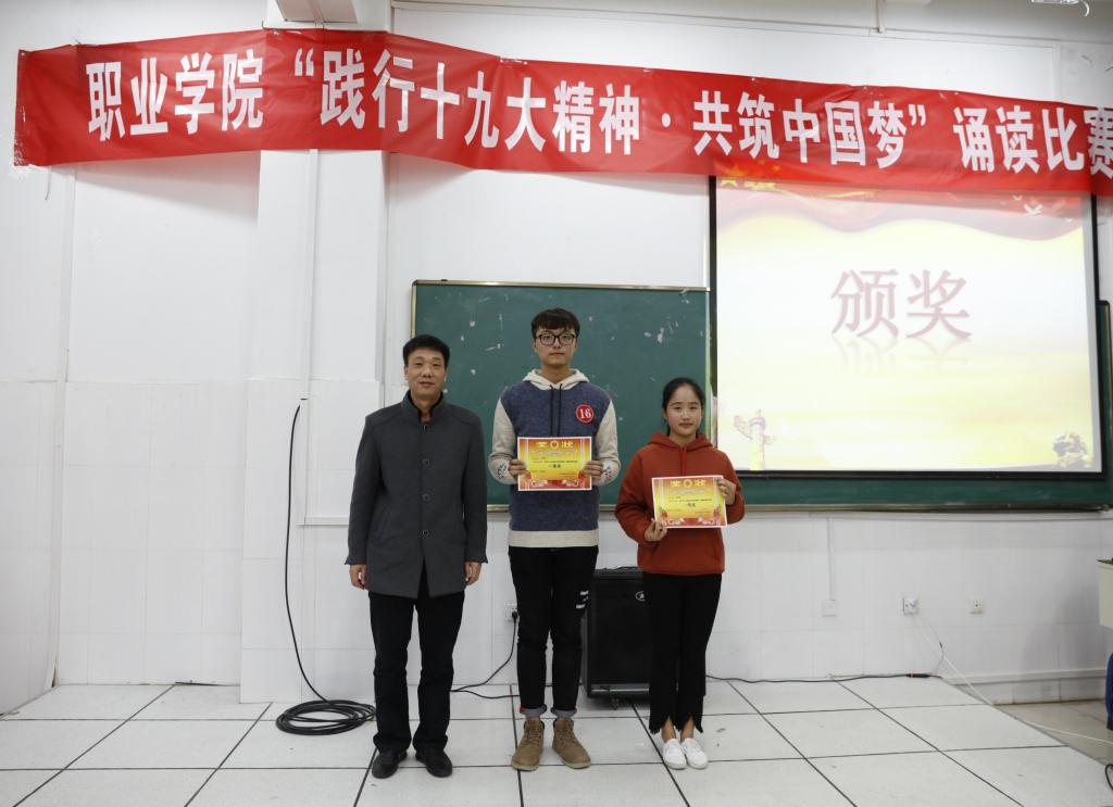 为了学习贯彻党的十九大精神,让习近平新时代中国特色社会主义思想在广大青年学生中落地生根,由职业学院团委主办,中高职学生会学习部联合承办的“践行党的十九大精神 共筑中国梦”诵读比赛于12月14日晚18:30在新阶梯教室隆重举行。