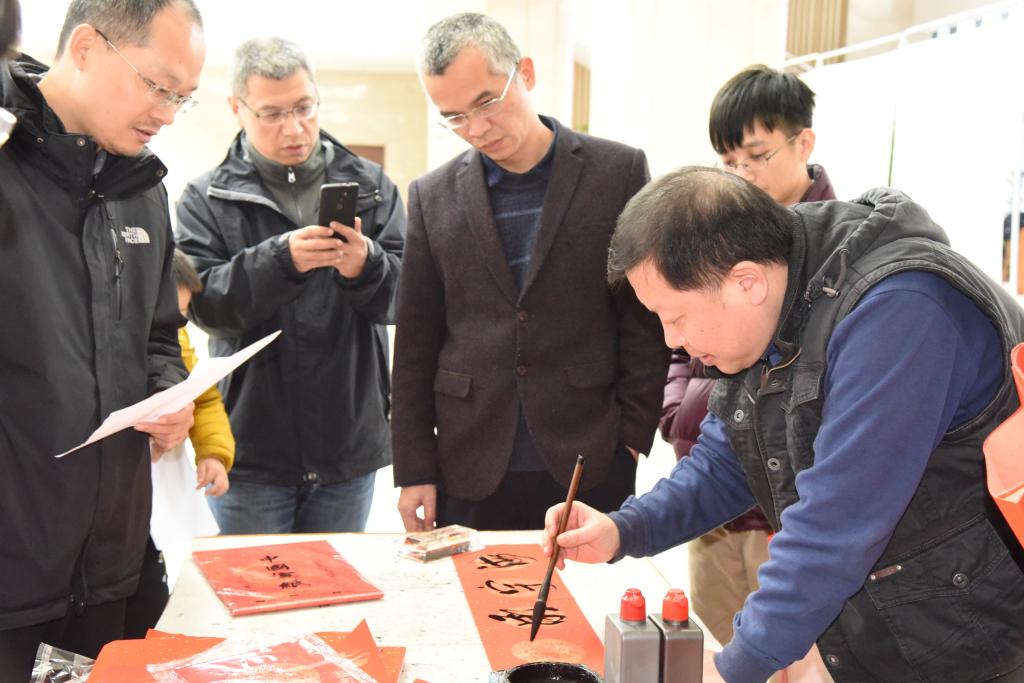 1月25日下午,校工会组织教工书画兴趣小组的书画爱好者开展免费为全校教职工书写春联活动。本次活动共赠春联、福字500多幅。