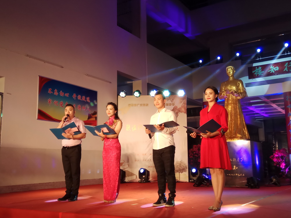当晚7:30,朗诵会以“行世间广交益友,知天下博览群书”为开场白,在琅琅的诗歌传诵中缓缓拉开帷幕,内容包含《只有星空保持着永恒》《提醒幸福》《月下独酌》《不忘初心》等诗歌,最后在《致敬陶行知》节目中达到升华。20位福建广播电视大学漳州分校的老师激情澎湃地朗诵了陶行知先生的40段经典语录,亲身感悟陶行知先生“捧着一颗心来,不带半根草去”的赤子之心和“甘当骆驼”努力践行平民教育的精神,同时引导广大教师努力成为平民教育的一份子,成为终生教育的志愿者,践行陶行知先生的教育精神。